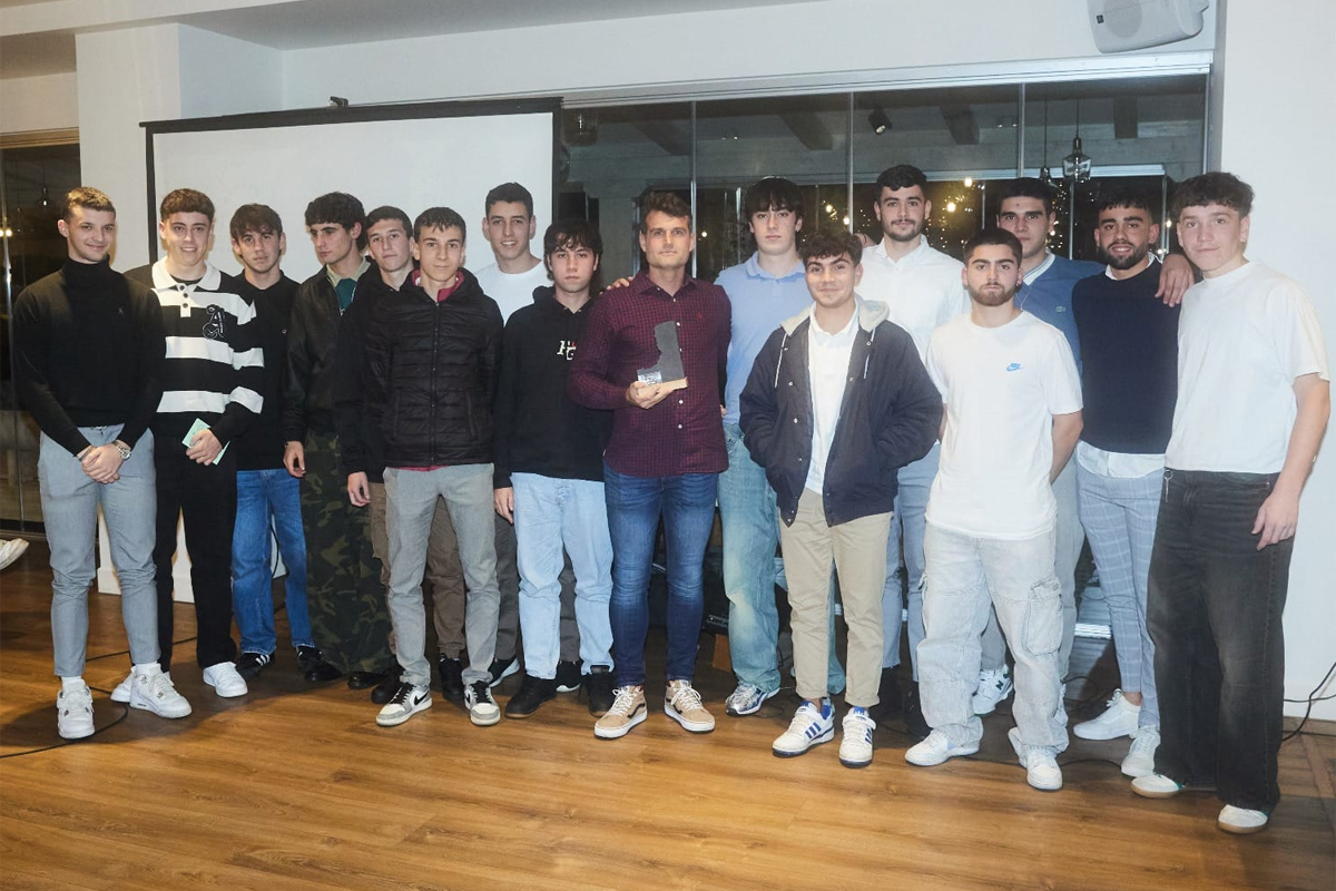 Óscar Fernández, presidente del Club, se encargó de la entrega del galardón al técnico del Juvenil, Rubén Fernández Alonso "Uve".