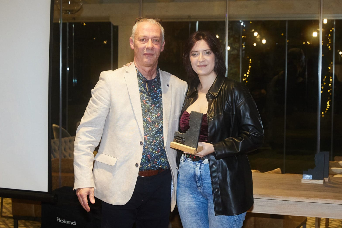 Berna Fdez-Campoamor, hizo entrega del galardón al jugador del primer equipo Simón Hortal, ahora en las