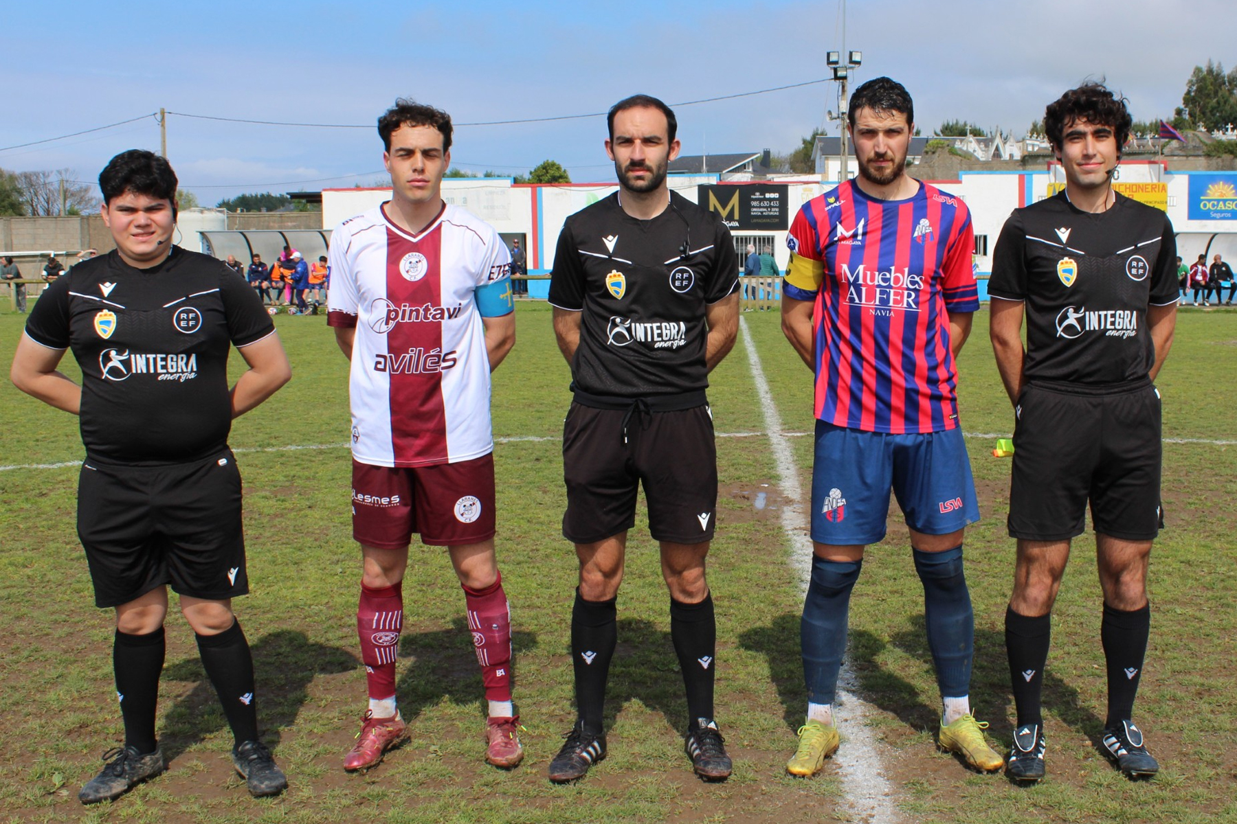 Trío arbitral y capitanes del Andés - Llaranes. Foto de Ángel González.