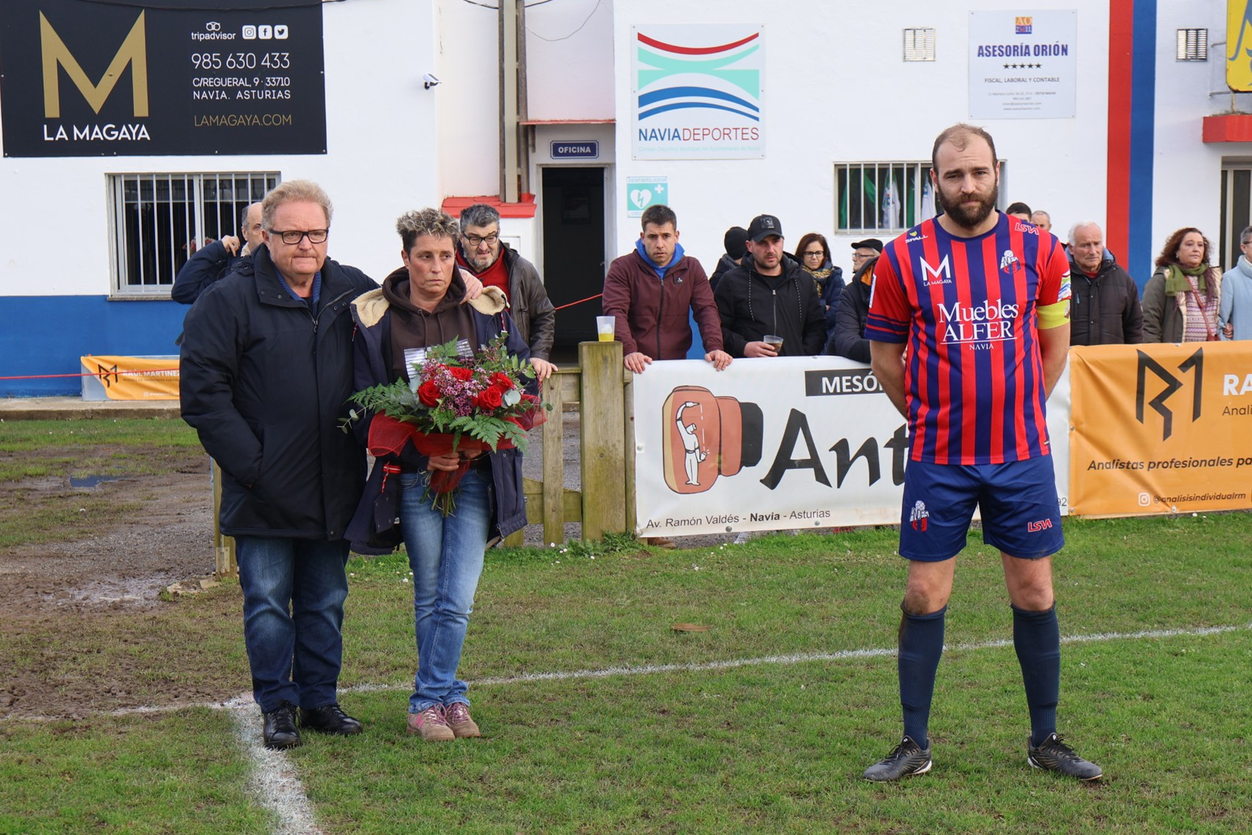 Minuto de silencio antes del encuentro, con la familia del extrenador Iván Palacios. Foto de Ángel González.